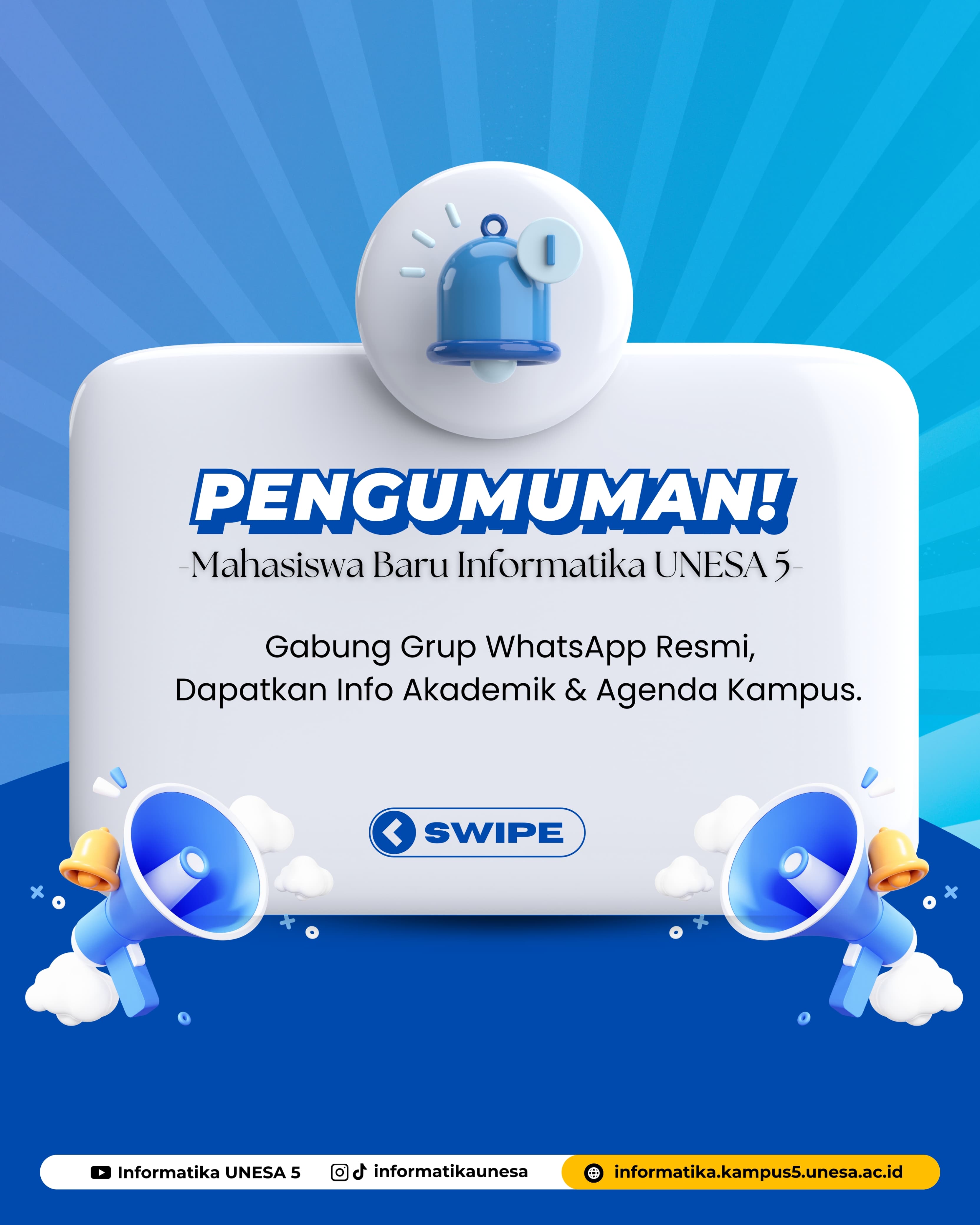 📢 Telah Dibuka! Pendaftaran Jalur Mandiri Prodi Informatika Kampus UNESA 5 Tahun Akademik 2025/2026Kabar gembira bagi kalian yang ingin bergabung menjadi bagian dari keluarga besar Informatika UNES